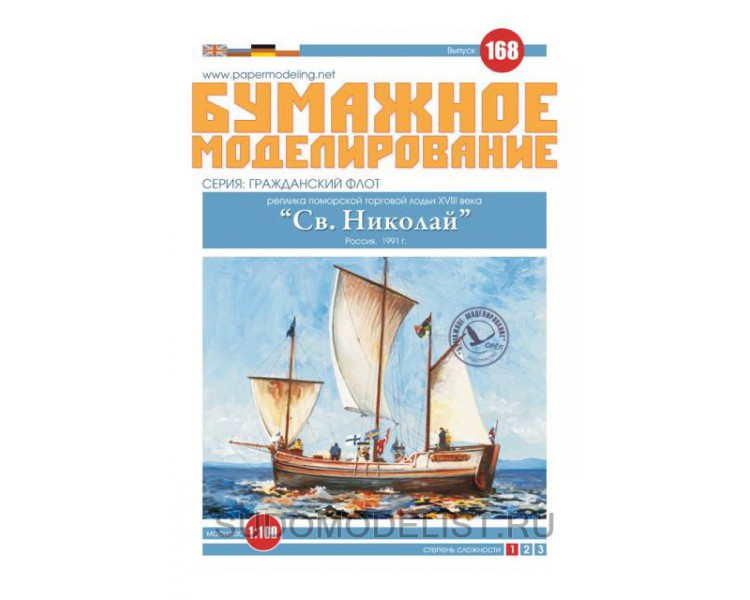 Сборная картонная модель поморской Лодьи "Св. Николай" от издательства Орел в масштабе 1/100, выпуск №168.