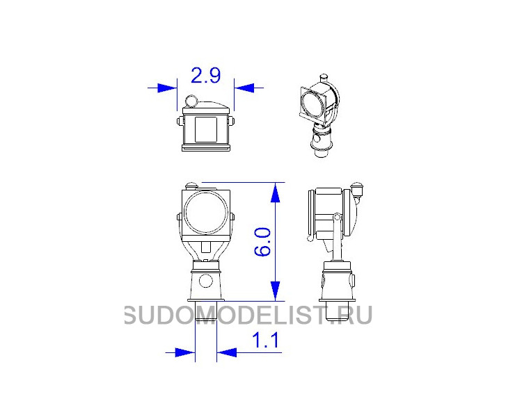 Набор Прожектора Манжена 75см с ручным приводом в масштабе 1/400