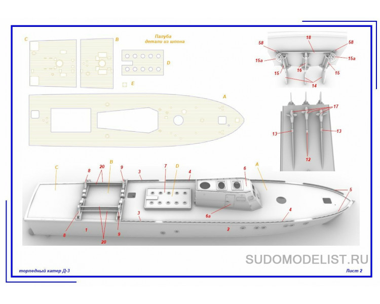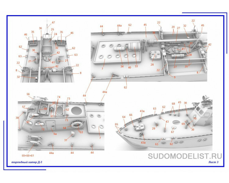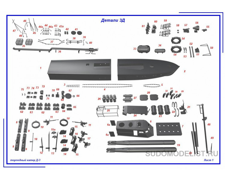 Набор для сборки Торпедный катер "Д-3" в масштабе 1/50