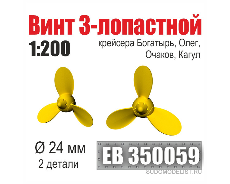 Винт 3-лопастной 24 мм Богатырь, Олег, Очаков, Кагул в масштабе 1/200