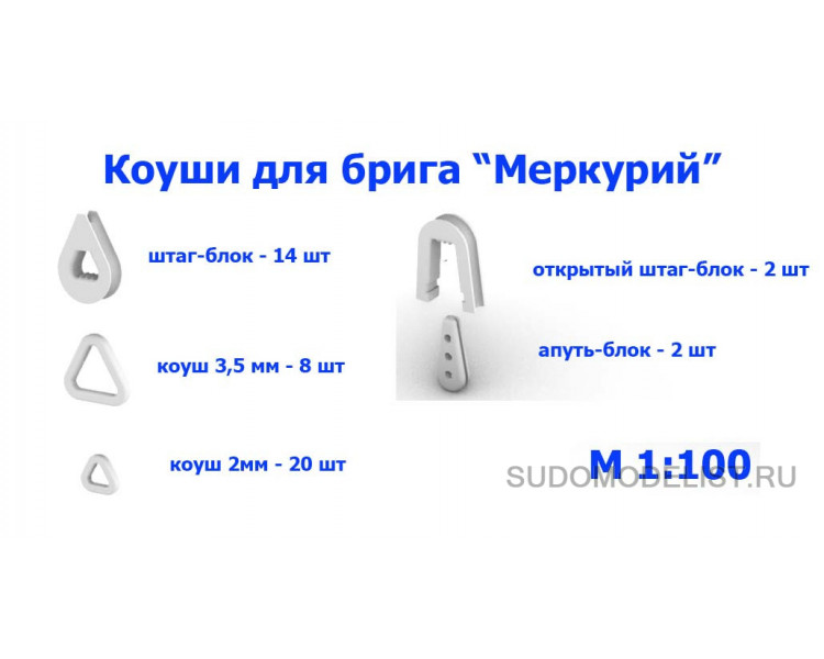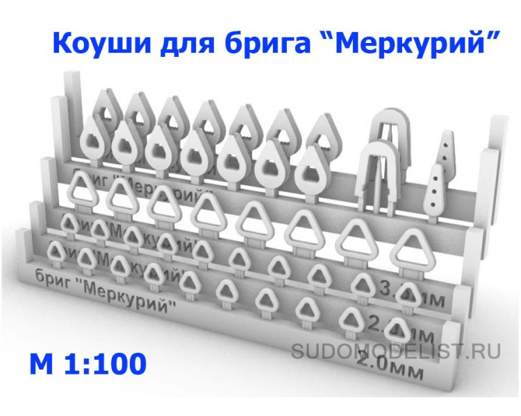 Набор коушей для брига "Меркурий" (46шт) в масштабе 1/100