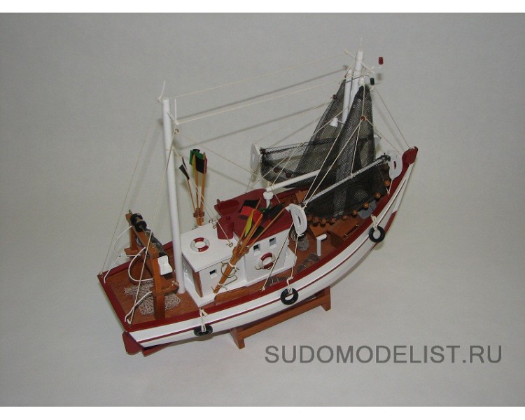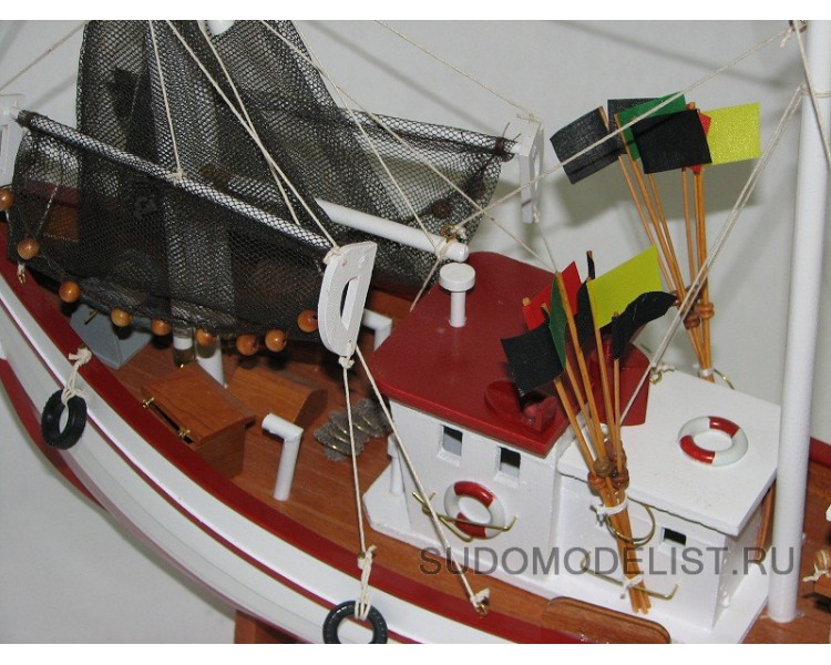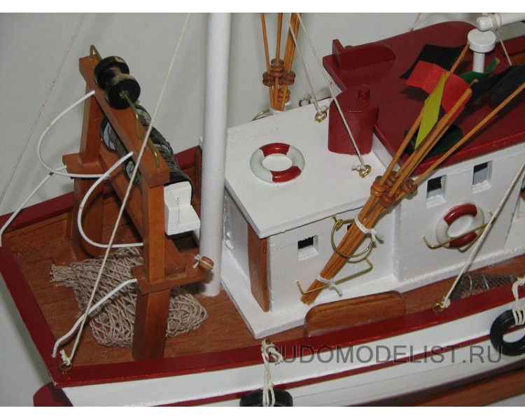 Интересная во всех отношениях модель рыболовного траулера. Высокая детализация и отличная сборка и покраска. Много продуманных и качественно сделанных деталей как: рыболовные сети, верши и краболовки, делают эту модель достойным участником на звание стендовая модель. Хотя это, все таки сувенир. Отличный, качественный сувенир.