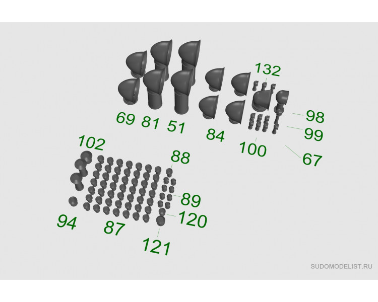 Набор №1 для крейсеров  "Жемчуг/Изумруд" в масштабе 1:200